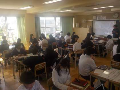 最後は、振り返りを一人ひとりがまとめました。1時間の授業の成果を確認する大切な取り組みです。