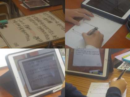 班で交流した内容をホワイトボードにまとめて発表しました。