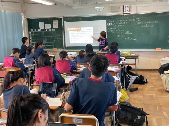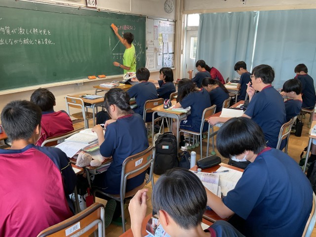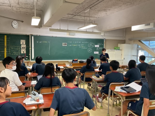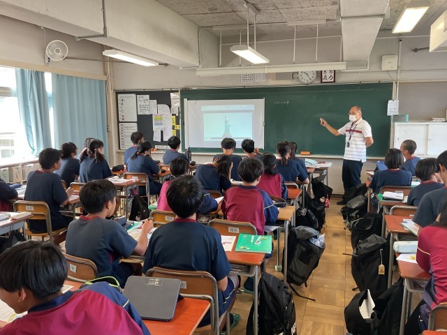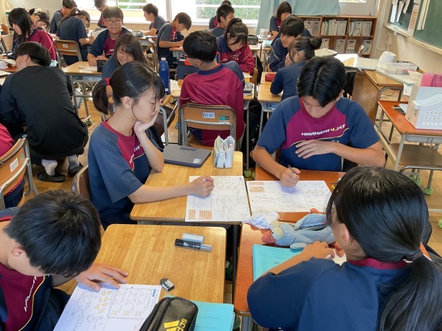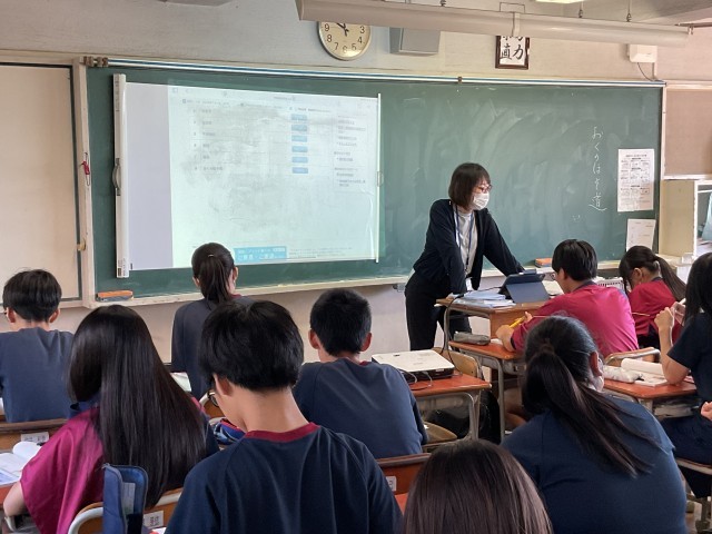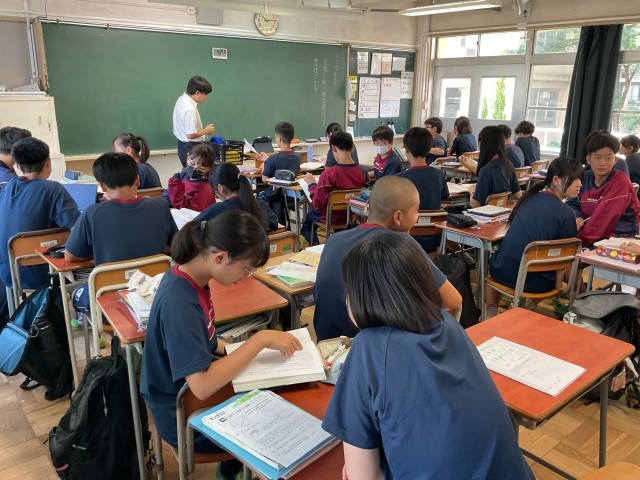 枚方市教育委員会の方がこの日は立て続けに来校されました。生徒指導担当による参観とは別に学校の様子として各クラスの授業の様子をご覧いただきました。やはりこころなしか、みんな少し緊張気味!?