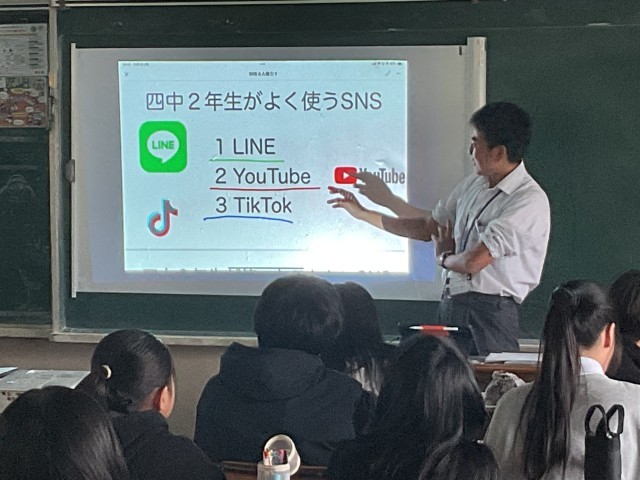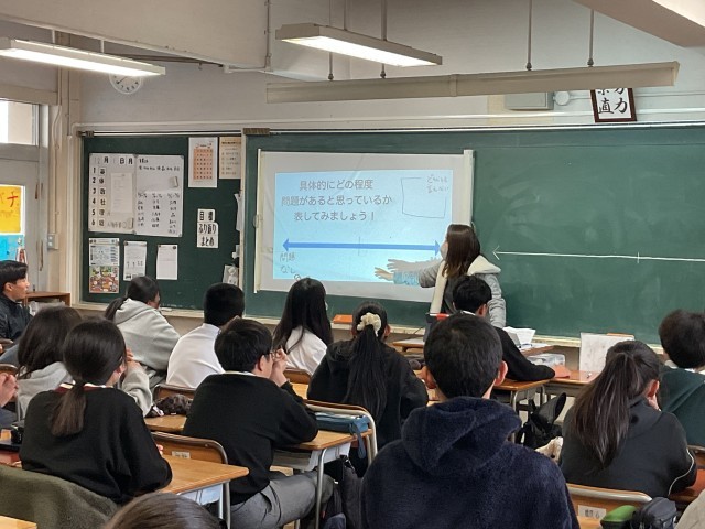 2年生の人権学習の様子です。今やSNSが日常になった一方で投稿内容によっては誰かが傷ついていることも少なくありません。その投稿内容に問題はあるのか?ないのか?いくつかのケースをグループで討議しました。議論が白熱しているグループもありました。