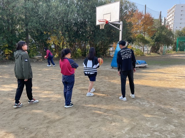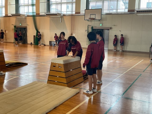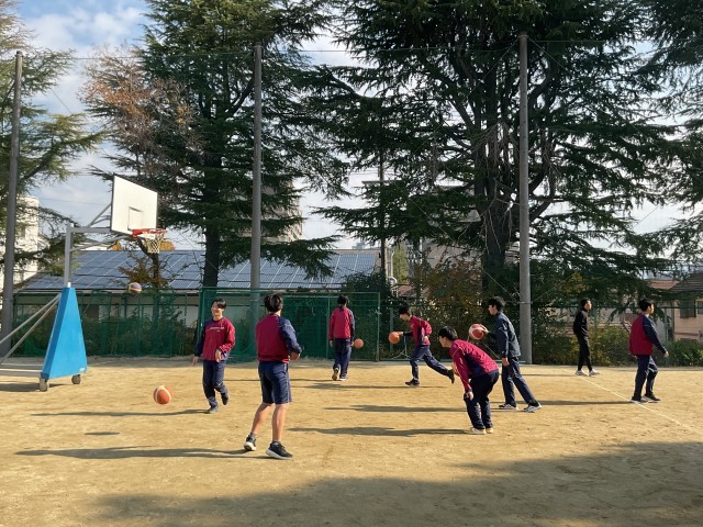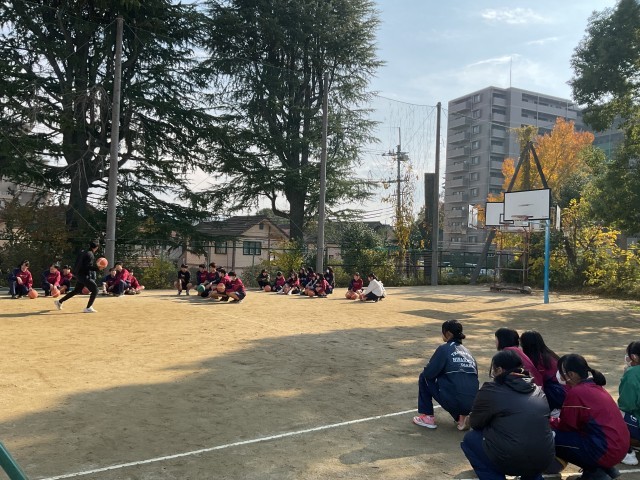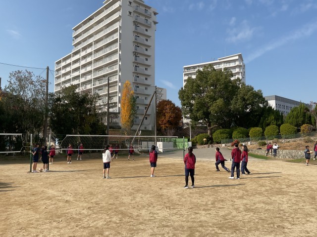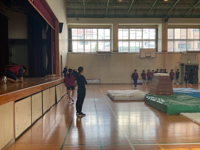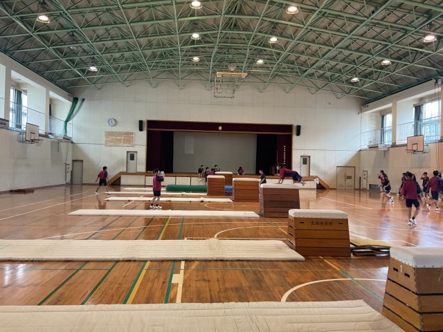 授業中の様子です。3年生はバスケットボール、2年生は跳び箱、1年生はバレーボールです。この単元が終われば次は持久走です。
