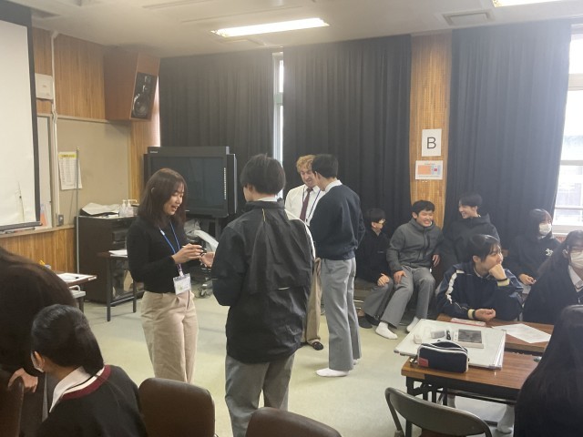 3年生の英語の授業中の様子です。この日は他校のNETも含めて6名のネイティブの先生とゲームなどをしながら楽しい時間を過ごしました。英語がコミュニケーションのツールであることを実感できる瞬間でした。初めのうちは消極的だった生徒たちが自然と英語を使ってコミュニケーションをとり、そこには多くの笑顔がありました。これぞ主体的な学びと思わせられるひとときでした。