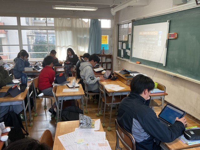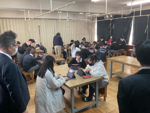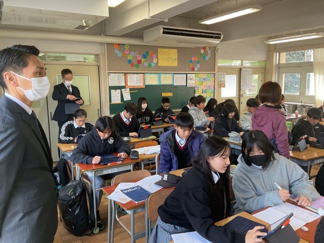 枚方市教育委員会の方々による授業参観の様子です。