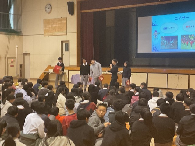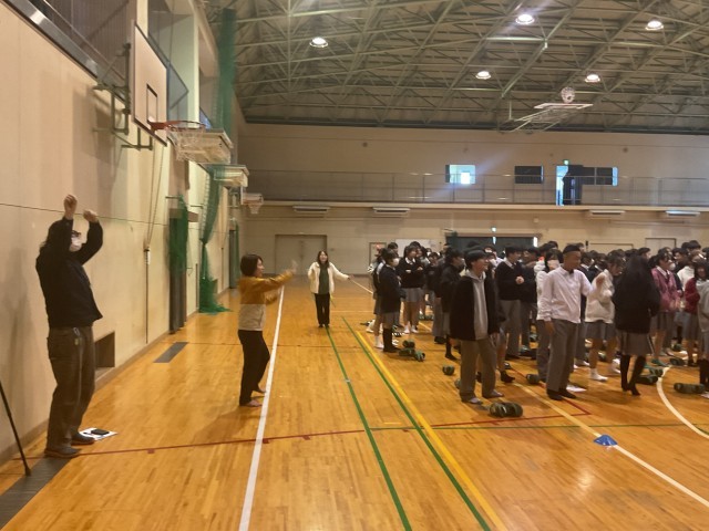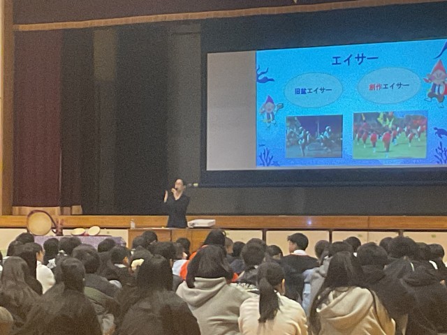 2年生で道徳講演会を実施しました。来年度の修学旅行の事前学習として「沖縄」について学びました。沖縄で生まれ育ったという梅本さんにご講演いただきました。沖縄の文化や歴史について学ぶ貴重な時間でした。最後は沖縄の音楽や楽器に触れてみんなで踊って盛り上がりました。ありがとうございました。