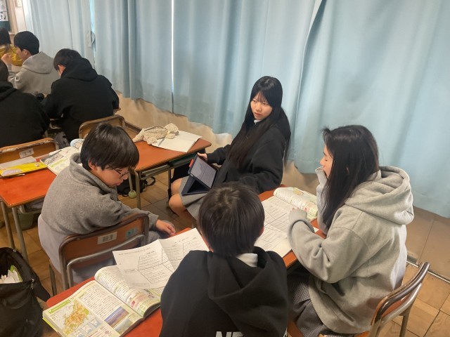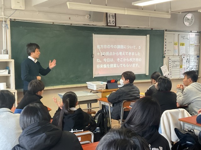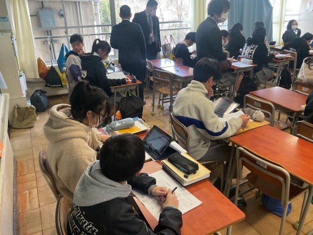 小学校3・4年生の社会科に「わたしのまち枚方」という教材があります。数年前にデジタル化になりました。この教材は枚方市独自のものです。中学校でも使っていくことはできないか。そこで生徒たちの意見を参考にしようということでこの日は教育委員会の方も参観に来られました。子どもたちの生の声は非常に参考になるとのことでした。