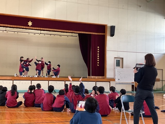 2年生体育科の授業でこれまでに取り組んできたダンスの発表の様子です。順次クラスごとに発表を実施しているところです。担任の先生や学年の先生も見守るの中、みんな堂々と披露しています。