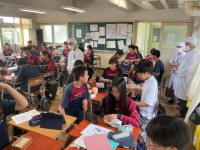 「楽しんで、学んで、絆深めよう 感謝の言葉を忘れぬように」を目標に、今日1日、ドラゴンボートやカヌー、ヨシ紙笛づくりなどを体験します。