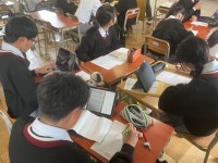 本日の6時間目に、1年生国語科の単元テストを全学級一斉に実施しました。国語科の授業以外は、各教科の授業時間を使って単元テストを随時実施しています。それにより、ノートや教科書、単語帳などを片手に登校する生徒が日常の光景として増えました。今までは中間テストの直前にしか見られなかった光景です。