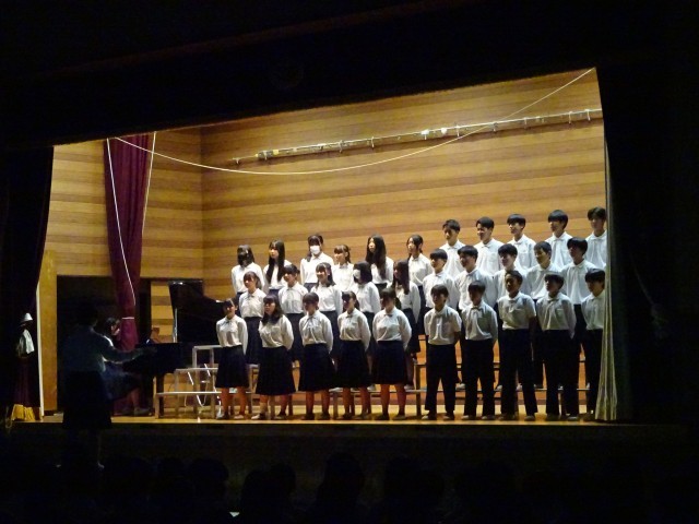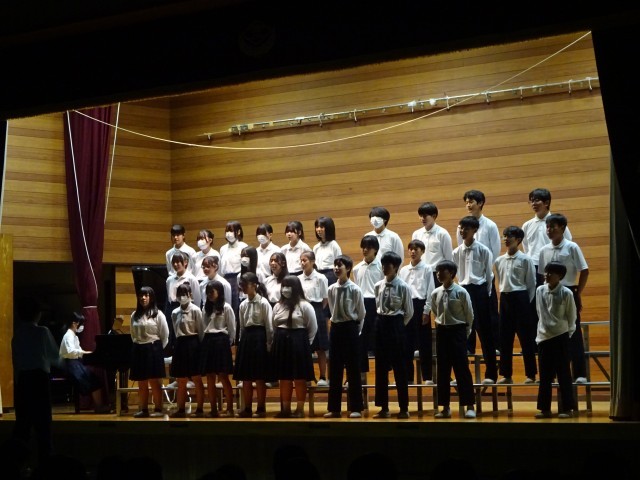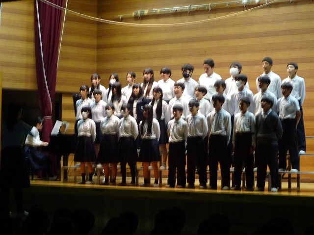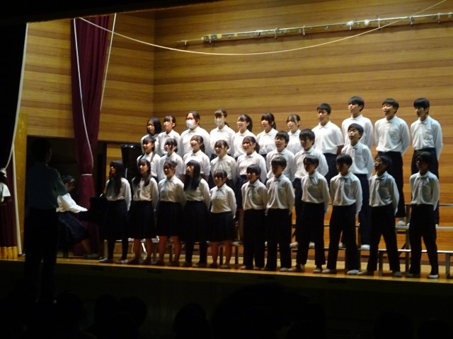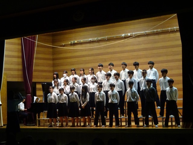 2年生は合唱発表です。中学校で初めての文化祭合唱となります。パート練習から始めて、今日のクラス合唱を完成させました。また、今年から総合的な学習の時間に取り組んできたテーマを発表もしました。
