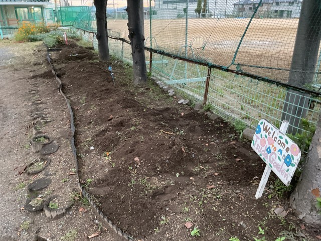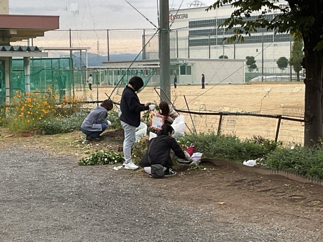 PTA園芸ボランティアの方々が、春に咲く花を植えるための準備で花壇の雑草などをきれいにしてくださいました。生徒たちの毎日の通り道の横にある花壇が、花でいっぱいになるのが楽しみです。皆さんありがとうございます。