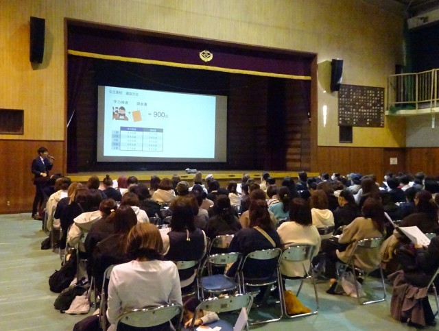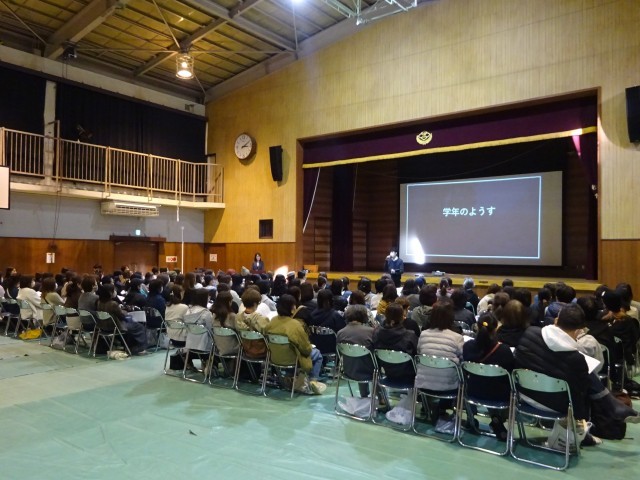 今後の進路決定までの流れを中心に、3年保護者集会を行いました。入試に関する制度が近年いろいろと変わる中での決定となります。将来を見据えた進路決定となるよう勧めていきたいと思います。お忙しい中でのご来校、ありがとうございました。