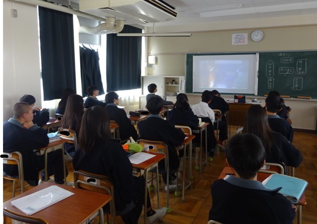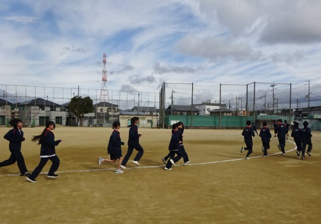 2年2組の社会の授業は動画を見てから、幕末で最も影響力が大きかった人物について班で調べて発表していました。3年3組の体育は、持久走の最終回の授業でした。ペアでペースを計りながら、1000mを走っていました。