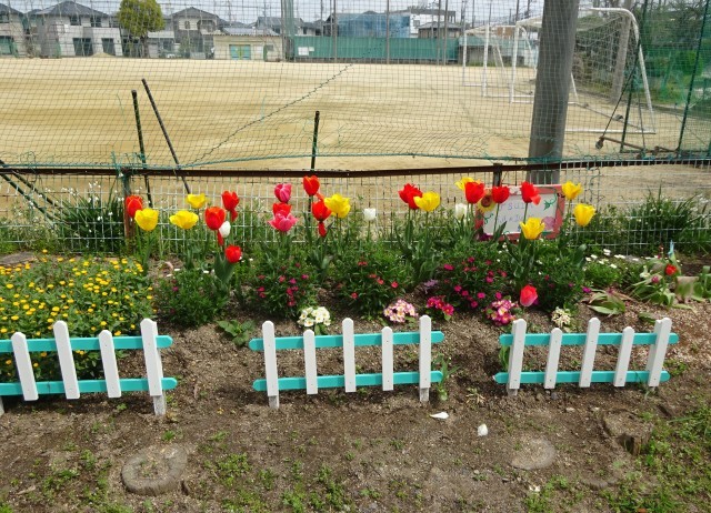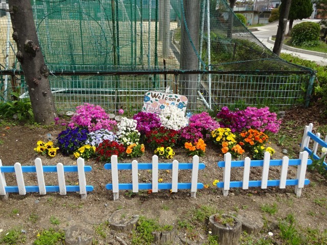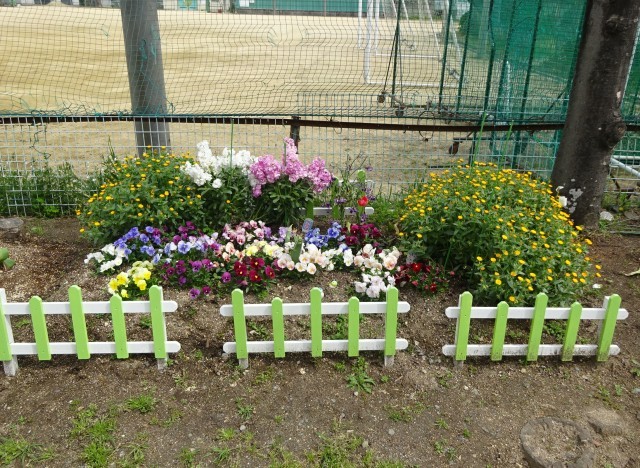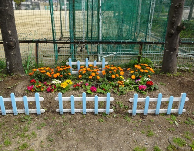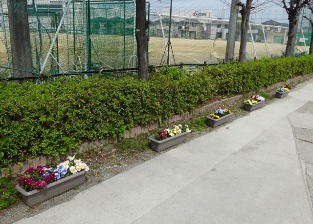 昨年度から、津田中学校PTAの呼びかけで、園芸ボランティアの方々を募集しました。4月の入学式などの時期にきれいな花が咲くように、苗を植えたり土を耕したりされてきました。きれいな花が満開です。