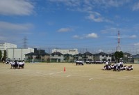 2年生が出発式を終えてバスに乗り込み、宇治方面へ校外学習に出発しました。あいにくの雨ですが、クラスで楽しい思い出をたくさんつくってきてください。