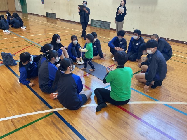 赤ちゃんに話しかけたり、話しかけられたりと、交流を通して生徒たちは、多くのことを赤ちゃんから教えていただきました。