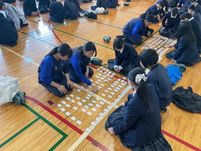 生徒たちは、上の句の数文字を聞いて、反応している歌もありました。