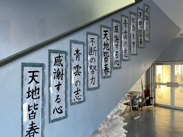 また、B棟1階階段横には授業の取り組みを掲示しています。