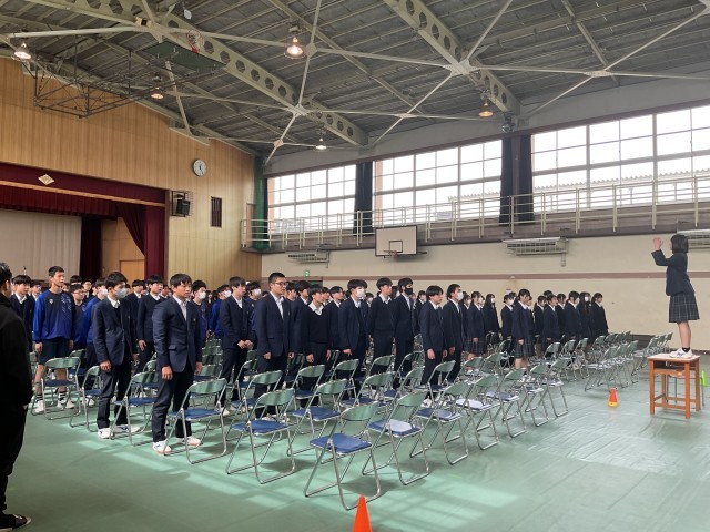 卒業式に向けて、体育館での全体練習が始まりました。