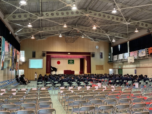 本日は予行練習を行いました。その予行練習の前後に、学年の先生全員から卒業生に向けて話がありました。旅立つ卒業生に向けての最後の授業となりました。卒業生は皆、真剣に聴きつつ、時に笑顔の溢れる会となっていました。