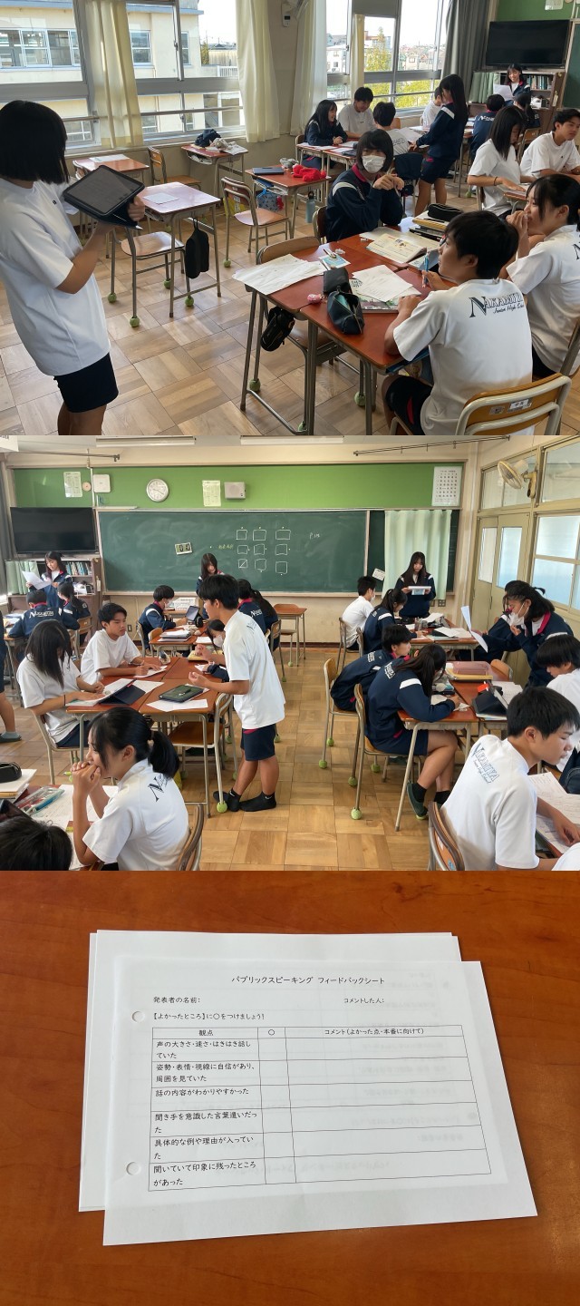 未来に伝えたいことという大きなテーマから各自が選んだテーマで「パブリックスピーキング」に取り組んでいます。