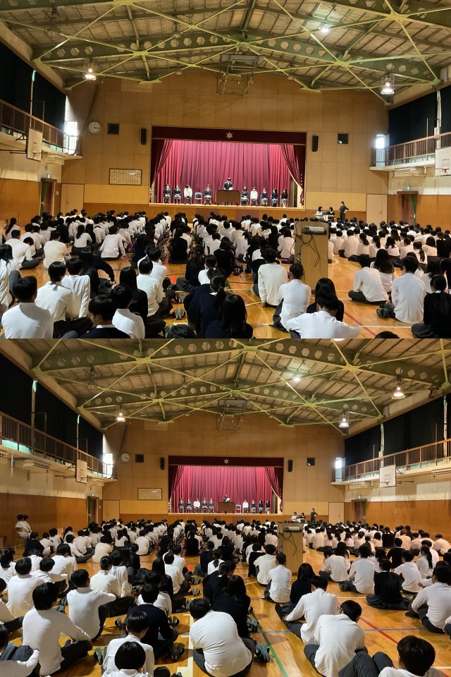 次期生徒会本部役員候補の民さんの演説を行いました。