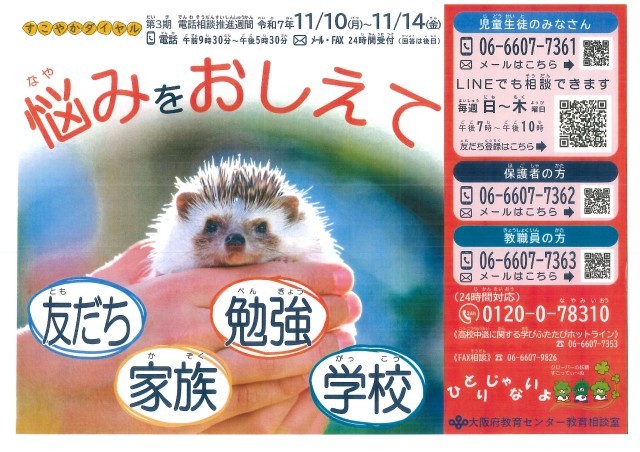 大阪府教育センター教育相談室からのお知らせです。