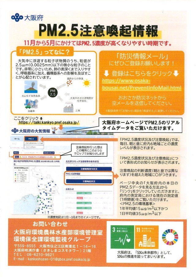 11月から5月にかけてPM2.5濃度が高くなりやすい時期です。注意喚起情報を参考にしてください。