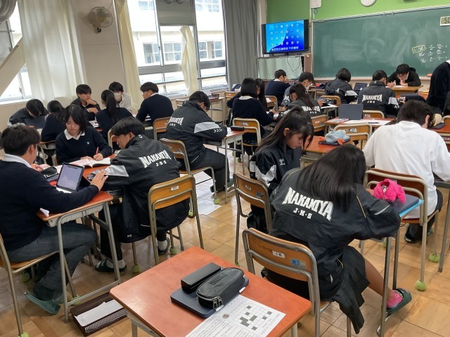 上段は先週実施されました2学期末テストが返却され、振り返りをしている様子です。