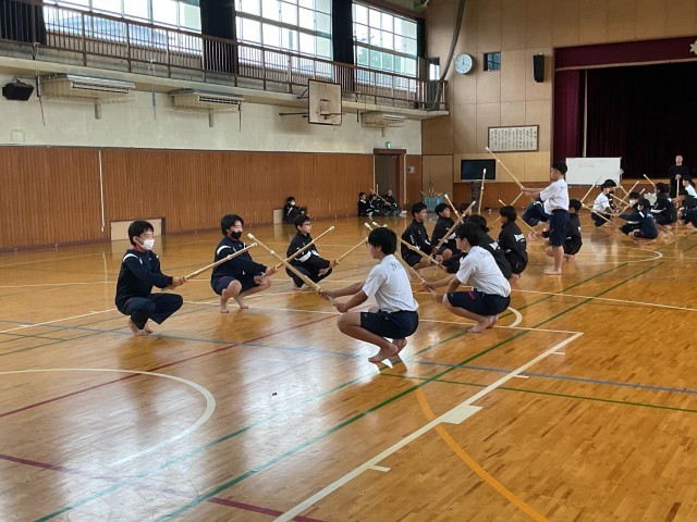 下段は、1年生の体育の授業で剣道に取り組んでいるところです。