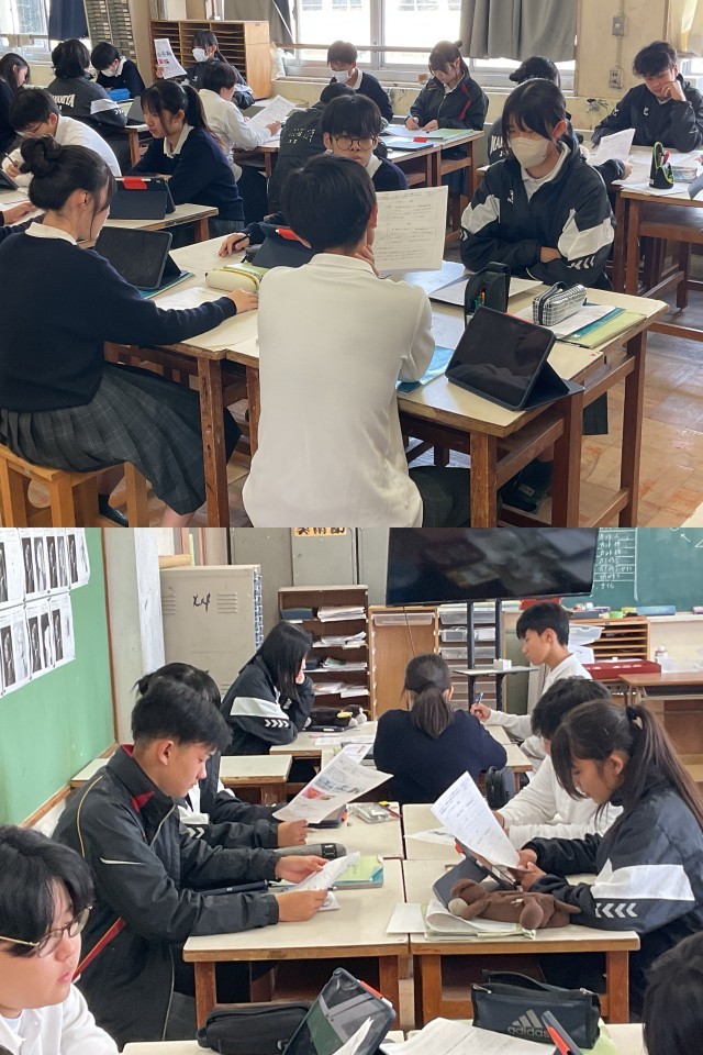 中宮中学校の魅力を載せたポスター制作に向けて取り組んでいます。