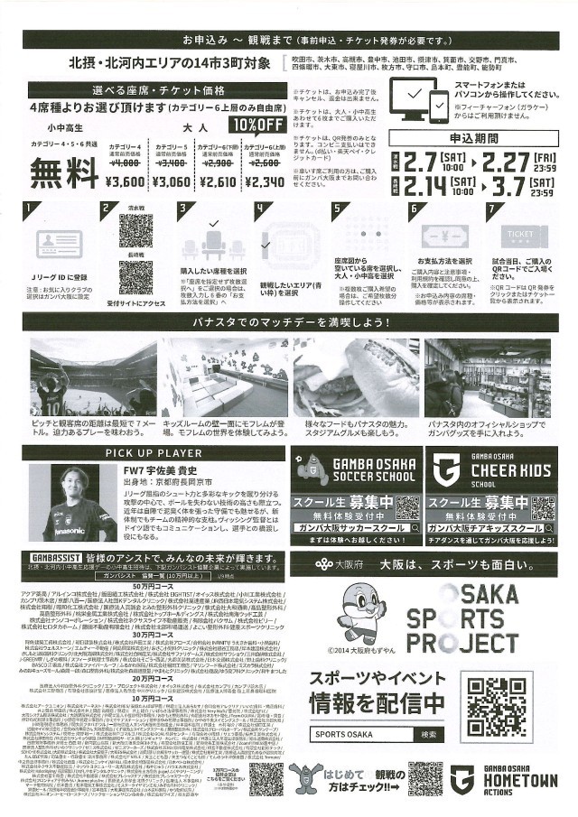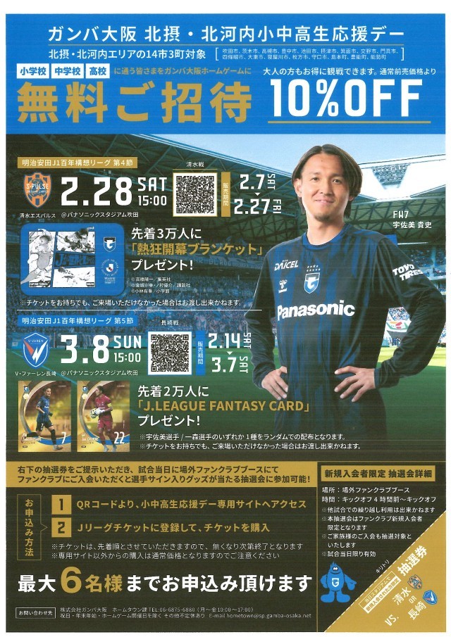 ガンバ大阪 北摂・北河内小中学生応援デー(案内)