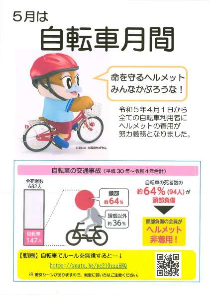 当月間を契機に更なる自転車安全利用と交通安全意識の啓発にご協力をお願いします。