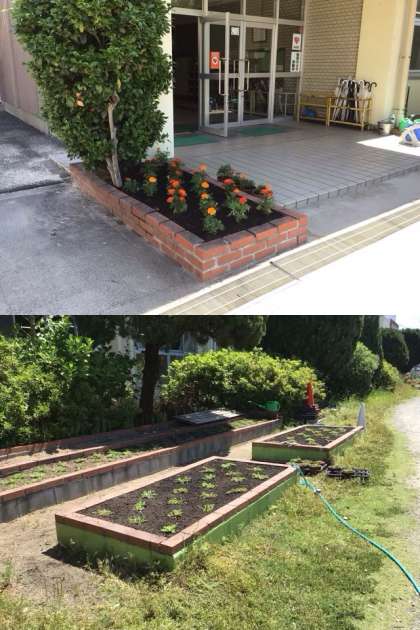 ・職員玄関にある水槽にメダカがいます。科学部の生徒たちが、当番でエサやりなどの世話をしてくれています。