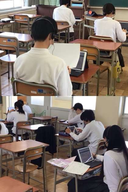 本日は、全国学力・学習状況調査の英語「話すこと」調査を行なっています。