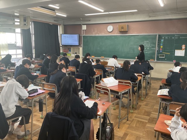 1クラスだけ特別教室での授業で、生徒のみんながいませんでしたが、3つのクラスの授業の様子を見ることができました。