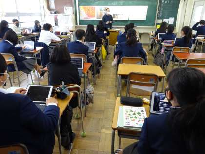 本日の技術・家庭科の授業では冬休みの宿題について説明を行いました。冬休みの宿題は調理実習です。自宅で料理をしてその様子をiPadで撮影し、レポートに張り付けて電子データで提出をします。今年度は新型コロナウイルス感染症防止のため調理実習ができるめどがたっていませんので、その代わりの宿題になります。学校で友達とわいわい楽しく料理をして食べるということはできませんが、宿題にすることによって家族に食べてもらえるという、いつもと違うだいご味もあります。家の人に料理の仕方を教えてもらったりしながら、一緒に食べてもらい、普段言いにくい感謝の気持ちを伝えるのもいいかもしれません。