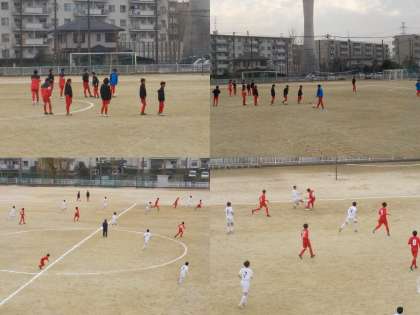 午後から本校で蹉跎中との練習試合が行われました。休憩を挟みながら、何試合か行われました。赤のユニフォームが招提中、白のユニフォームが蹉跎中です。