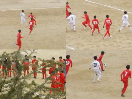 本校のグランドはきれいな長方形でしかも広く、サッカーのコートには、うってつけとのことです。両校の生徒ともに広いグランドを走り回り、パスをつないだり、ドリブルで持ち込んだりの熱戦が繰り広げられました。