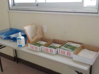 2年生の教室前の廊下には、問題集などの回収ボックスがあります。家庭で学習したことを朝8時30分までに、このボックスに入れることになっているそうです。