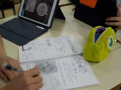 美術の授業は学年ごとに課題が違うので、たくさんの活動を見ることができます。