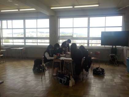 今日は、教育相談の日です。各クラスで担任の教員と生徒の皆さんが学校生活などについて、じっくり話し合う時間になります。その様子を見に行っていたところ、2年生の学協教室で自主的に学習に取り組んでいる生徒の皆さんを見つけました。それぞれが課題に向き合い、教え合いなども行いながら、自ら進んで学習しています。