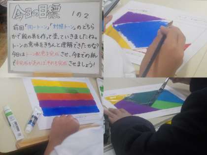 「同一トーン」「対照トーン」のどちらかの色使いで色を塗っていきます。どの色を選ぶかは各自のセンスに任されます。