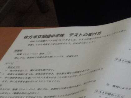 「定期テストの受け方」について、資料を活用して説明が行われました。中学校は小学校とは違い、中間テストや期末テストなど、一定期間に学習した内容について、まとめてテストが行われます。小学校のようにその都度、行われるテストと違うので、慣れるのに少し時間がかかるかもしれません。