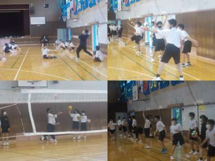 また、生徒間でアドバイスを行う時間も設定され、どんどんうまくなっていく様子が見られました。最後に教員から「急がないでボールが当たるまで待つ」「ボールをよく見て体重移動を意識する」ことのまとめが行われました。
