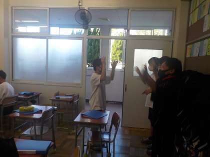 今日は、班ごとに手話の取り組みを行いました。