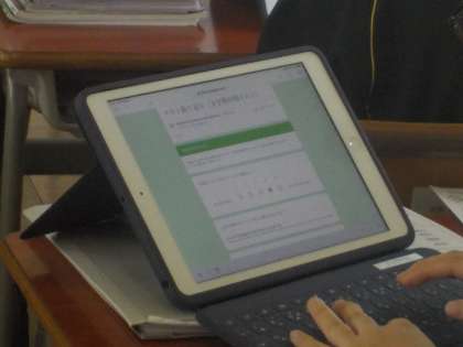 iPadを使って、中間テストの振り返りを行っています。