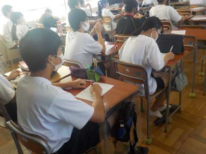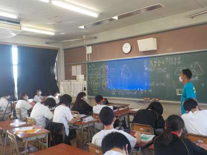 授業の冒頭に文字式、方程式、図形など、1年生からの復習も兼ねて、いろんなタイプの問題にチャレンジしています。