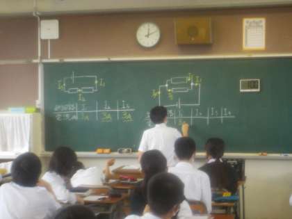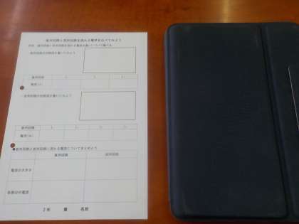 生徒の皆さんは教員の説明を受けて、プリントに記入しています。