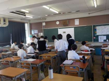 教室内を移動して、やり取りを行います。