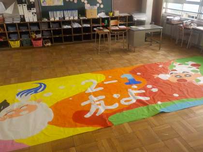 昨日紹介しました2年1組のホリゾントが完成に近づいています。
